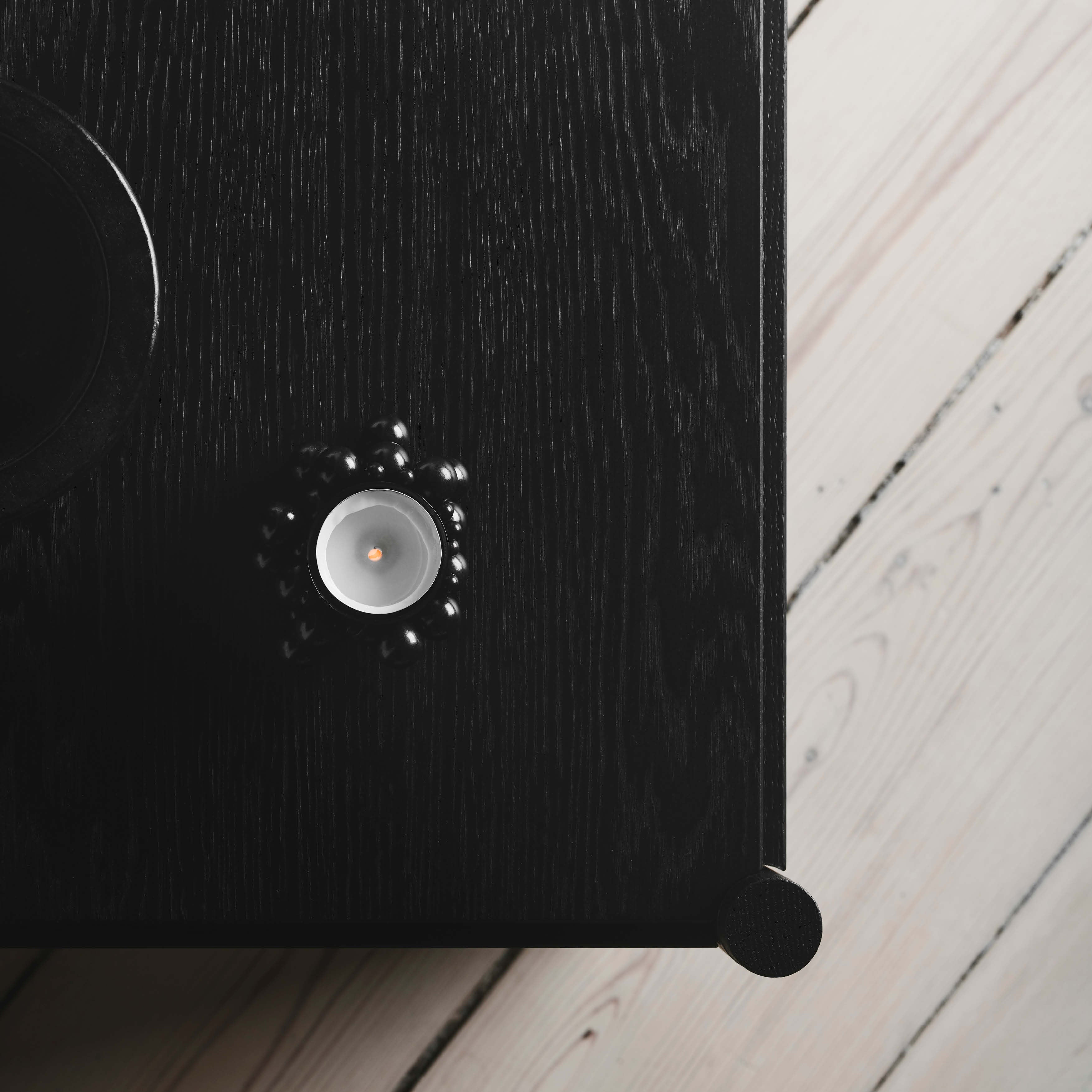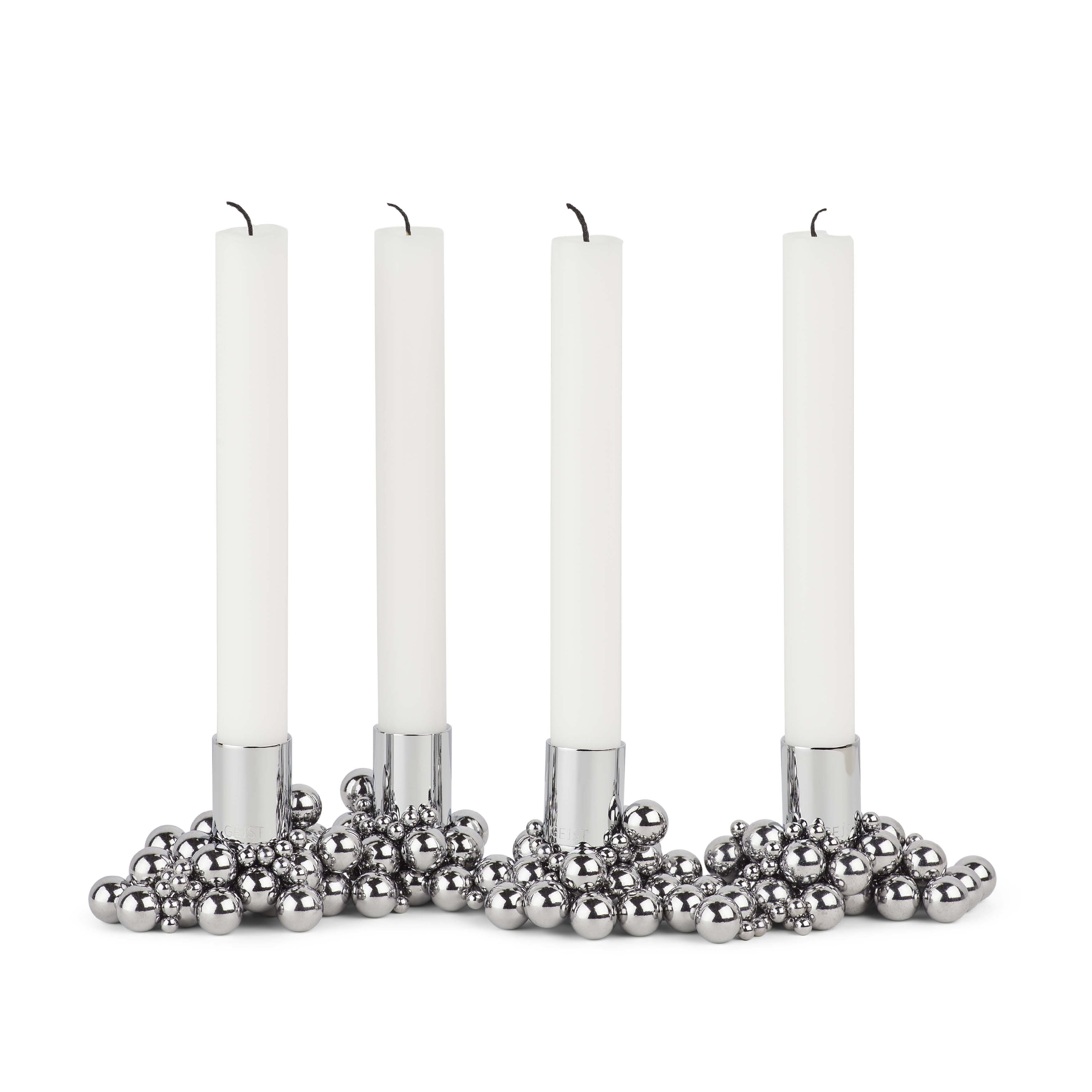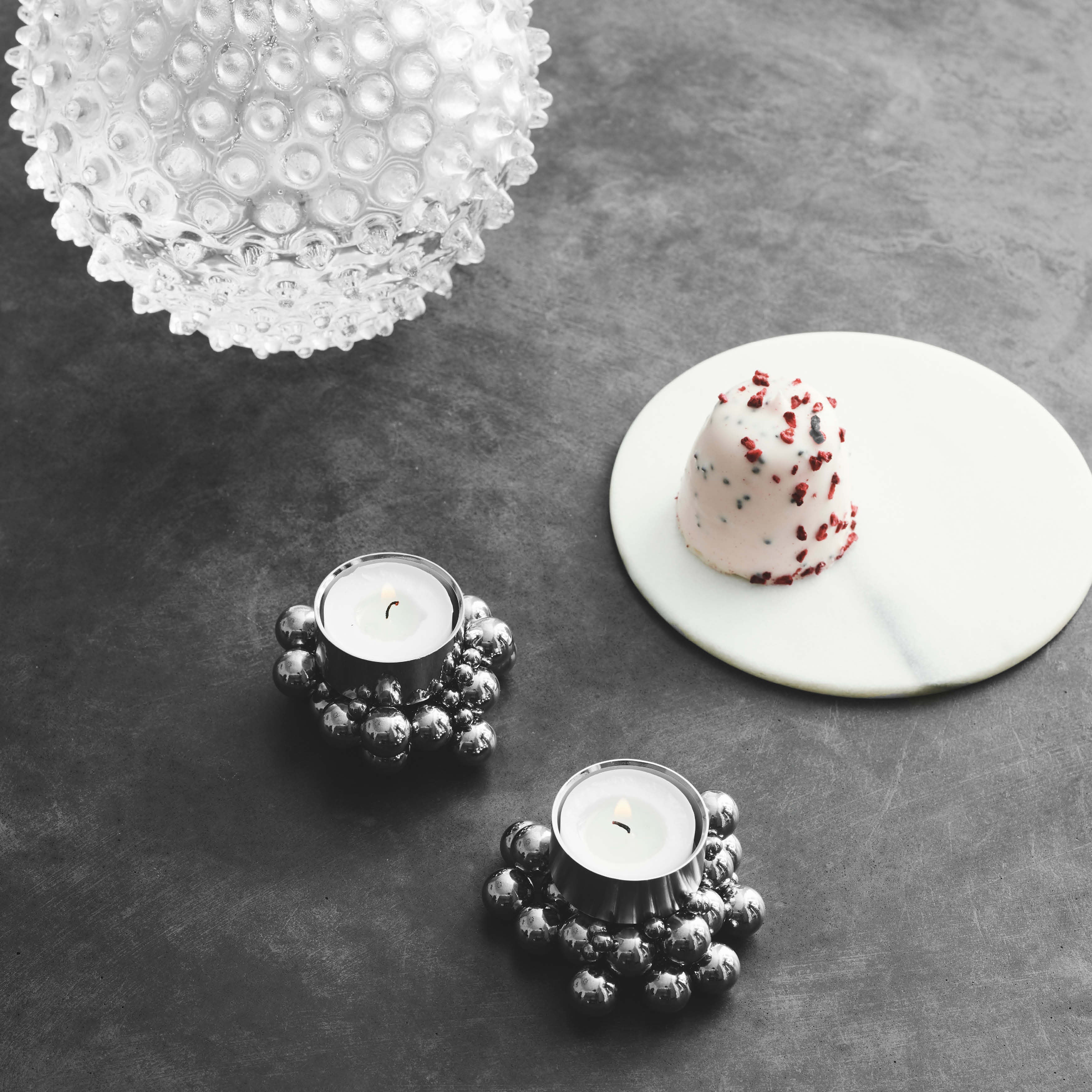 Brug fyrfadslysestagen som udsmykning på bordet eller i vindueskarmen. Leg med den, og lav dekorative opsætninger. Sæt flere Molekyl sammen for at skabe en traditionel adventsstage. Lav en skulpturel ved at placere selve lysholderen på toppen af kuglerne, så det ligner, at lyset svæver over en gruppe molekyler. For at udfordre tyngdekraften kan man sågar placere nogle af stålkuglerne under en tynd flade. Placere selve lysholderen oven på. Molekyl tealight 1 fyrfadslysestage fås i varianterne sort, krom og messing. På den måde kan den både signalere det klassiske, rå og eksklusive.