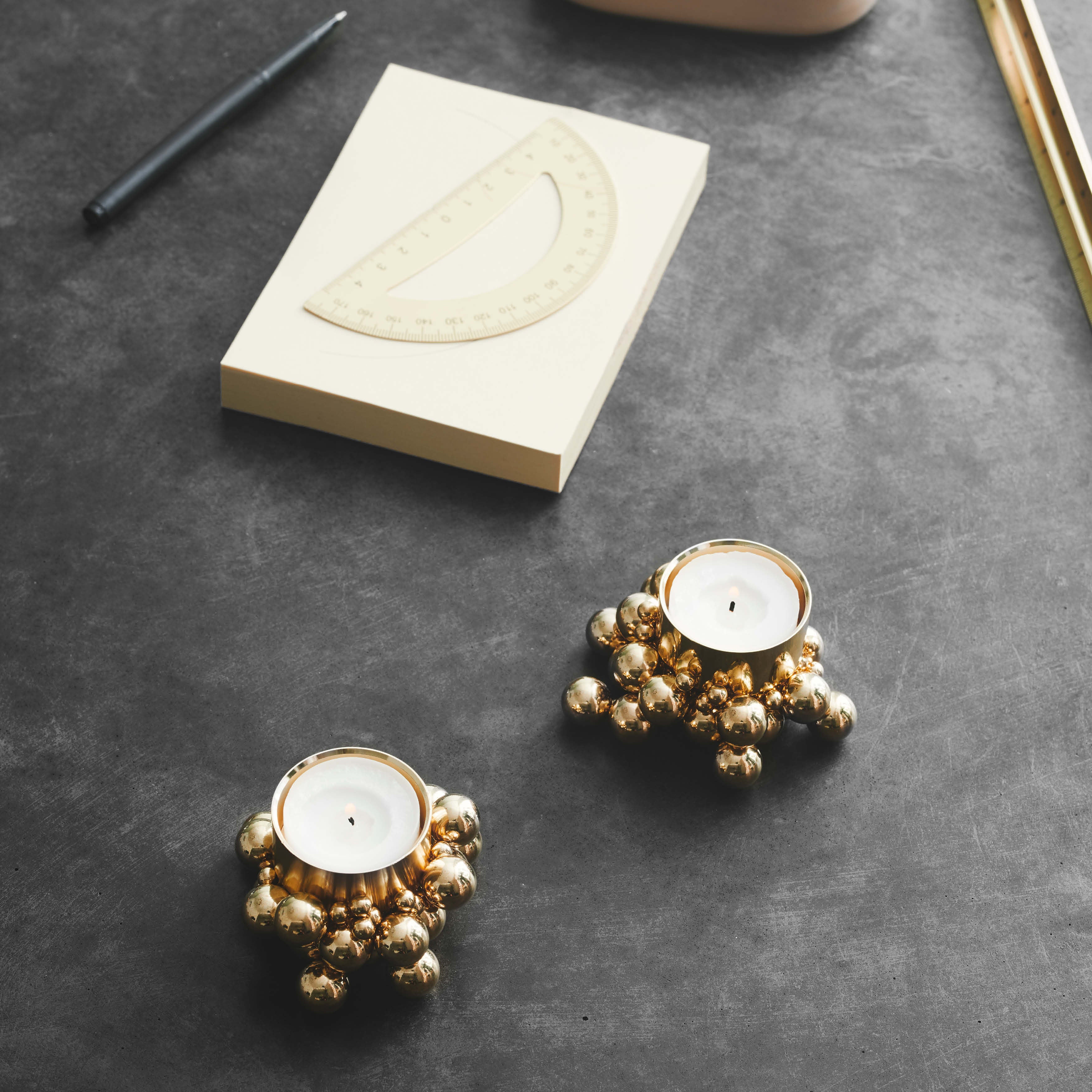 Molekyl fyrfadslys 1 messing består af én lysholder, én magnet og stålkugler i flere forskellige størrelser. Den udmærker sig ved sit unikke design, hvor det endelige udtryk er op til dig. Molekyl har ikke ét færdigt look.