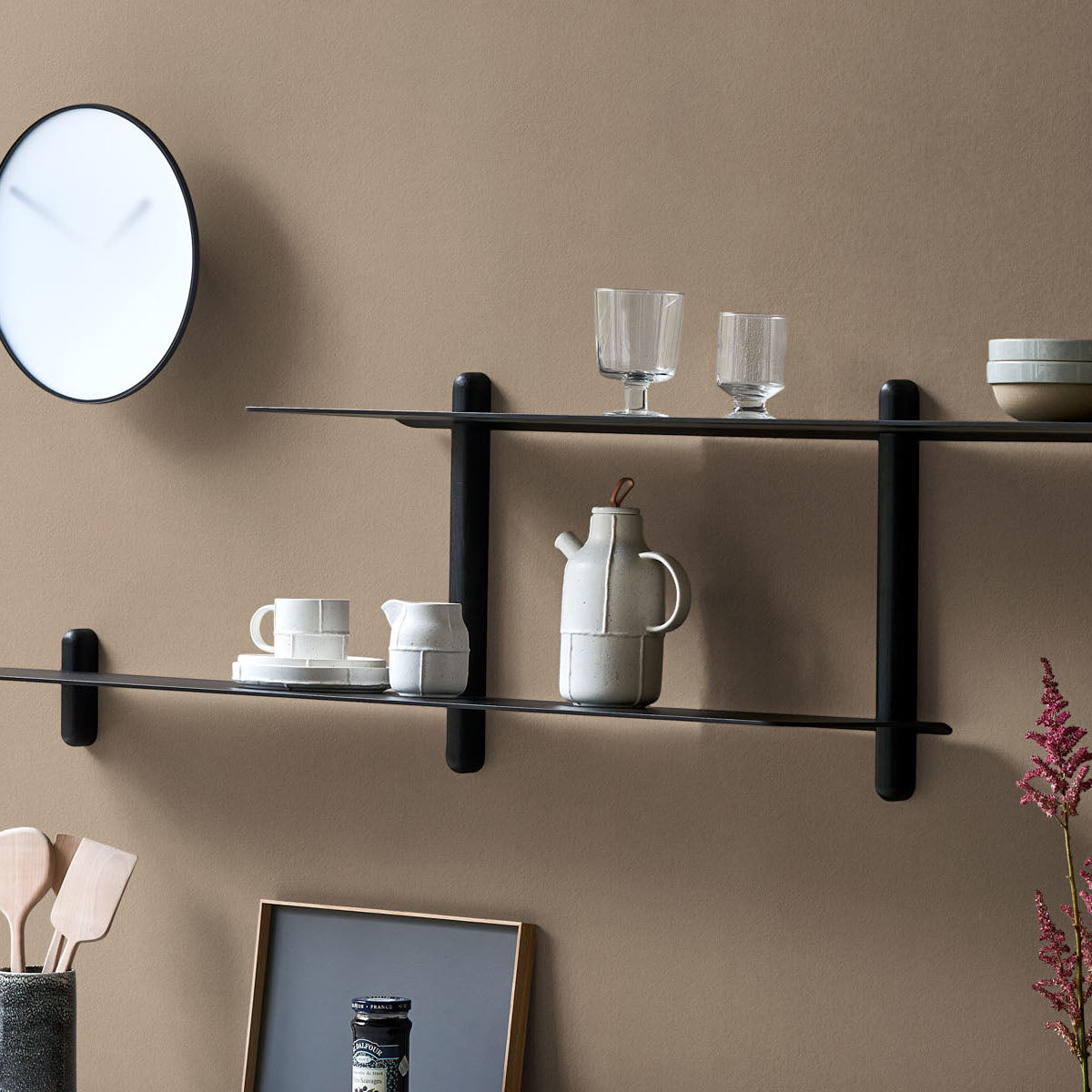 Nivo hylde er med sit nordiske udtryk diskret i sin fremtoning og overbevisende i sin enkelhed. Nivo findes i en stor og mindre variant. Nivo er en minimalistisk væghylde, der er desi...