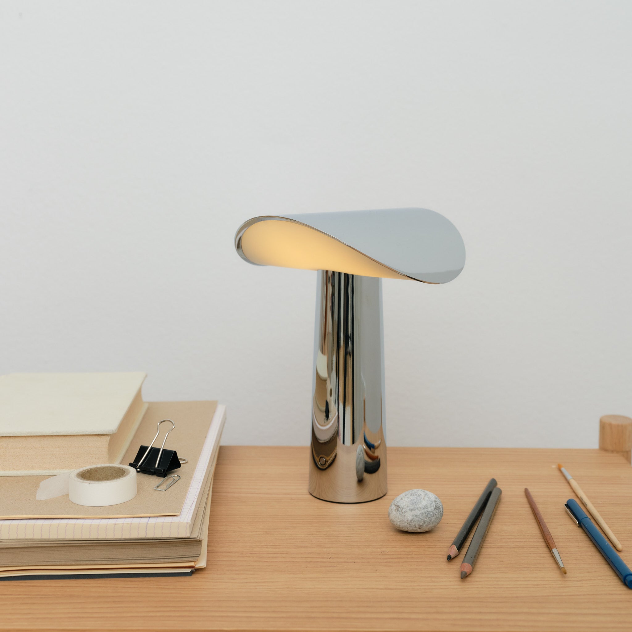 Lium er inspireret af efterårets rolige stemning. Den let buede lampeskærm minder om et blad, der netop er dalet til jorden i vinden. Bladet hviler let på lampens krop og skaber et diskret spil ...