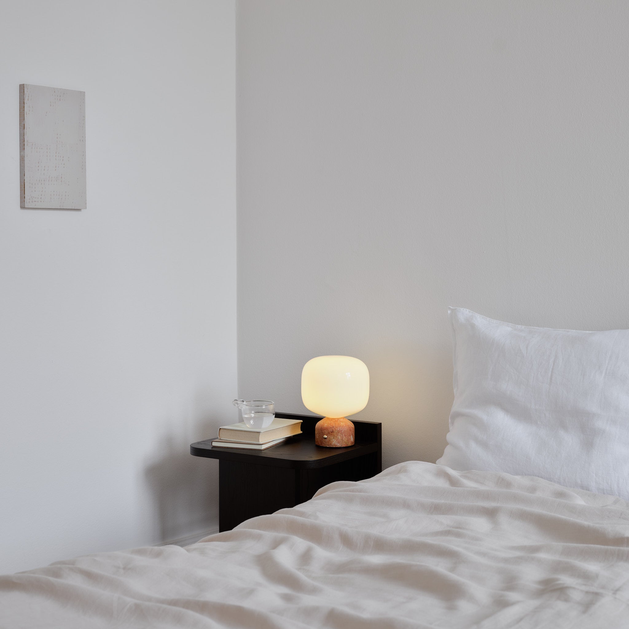 Meemo er en portable bordlampe, der passer perfekt til rolige og stemningsfulde rum. Den fungerer ideelt i soveværelset, læsehjørnet, intime hotelværelser eller på restaurantborde – steder hvor blødt, varmt lys skabe stemning og formgiver rummet med et blødt, behageligt lys – der inviterer til ro og nærvær.