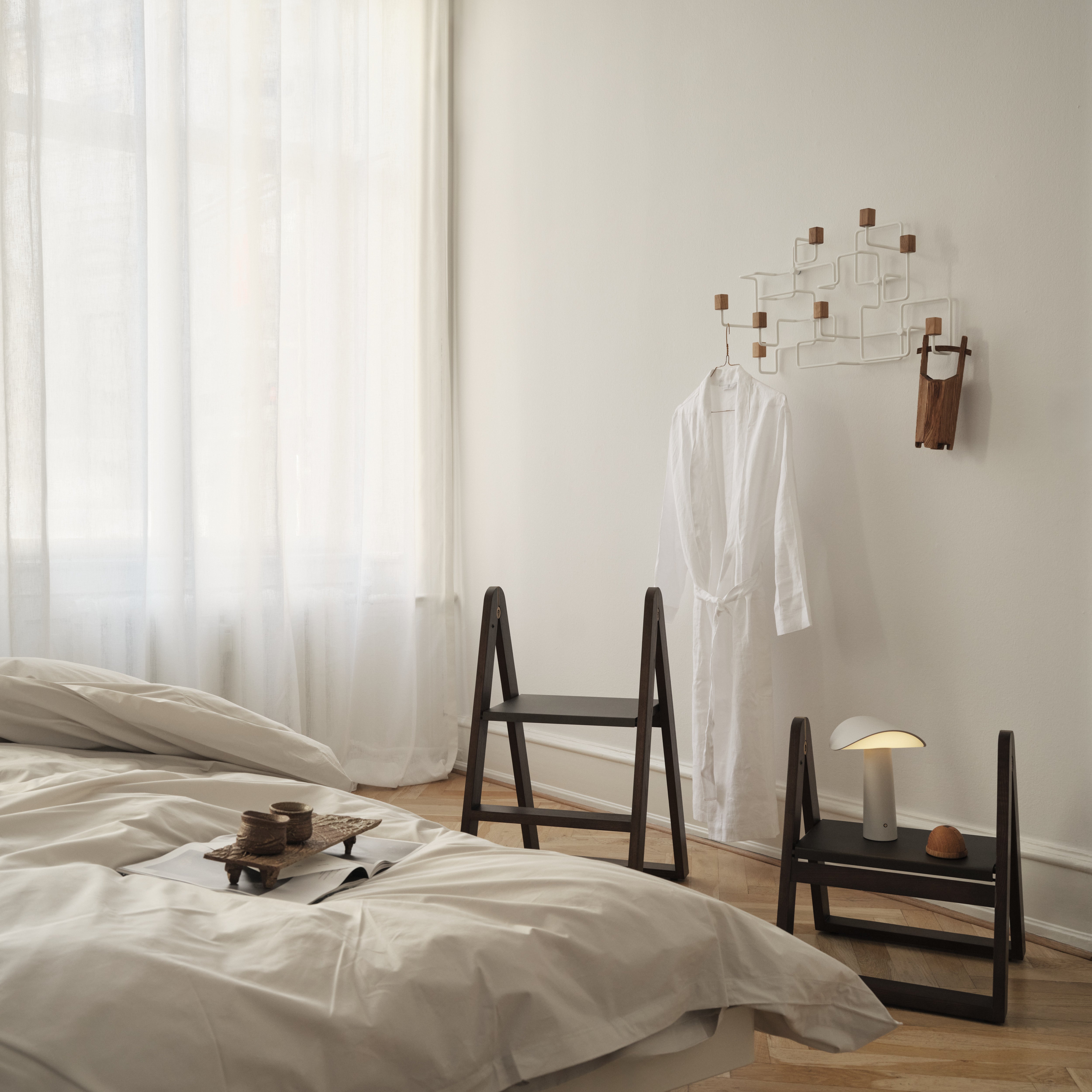 Reech skammel er også ideel som en pladsbesparende løsning og leveres, ligesom storebroren, med et beslag så den kan hænges på væggen eller gemmes væk i skabet. Beslaget er diskret og skjules af det øverste trin, hvilket skaber en illusion af, at Reech svæver på væggen.
