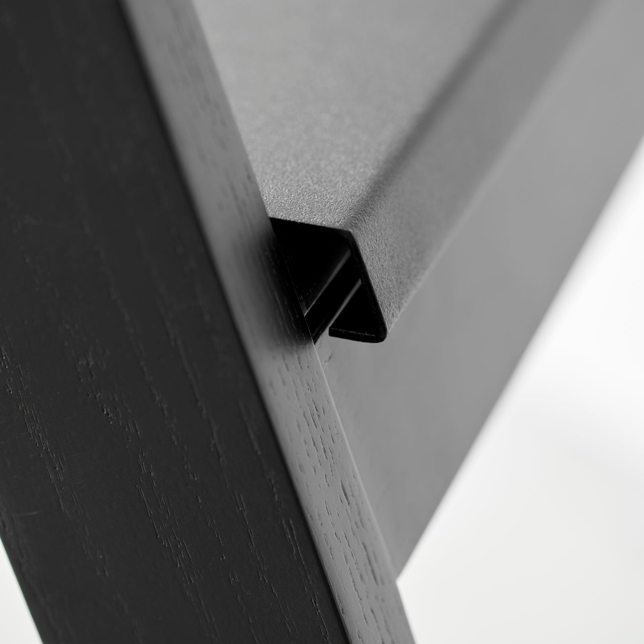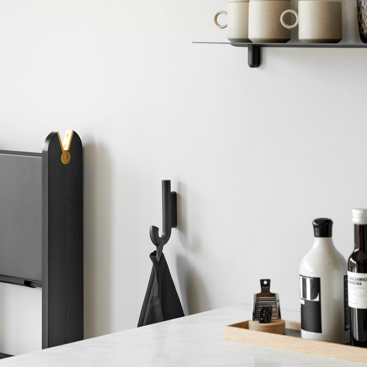 Reech kommer med et fint beslag, som gør det muligt at hænge trappestigen på din væg eller gemt væk i skabet. På den måde, kan du pakke trappestigen sammen når den ikke er i brug, uden at den optager unødvendig gulvplads. Beslaget på væggen skjules af trappestigens øverste trin, hvilket giver en illusion af, at Reach næsten svæver på væggen.
