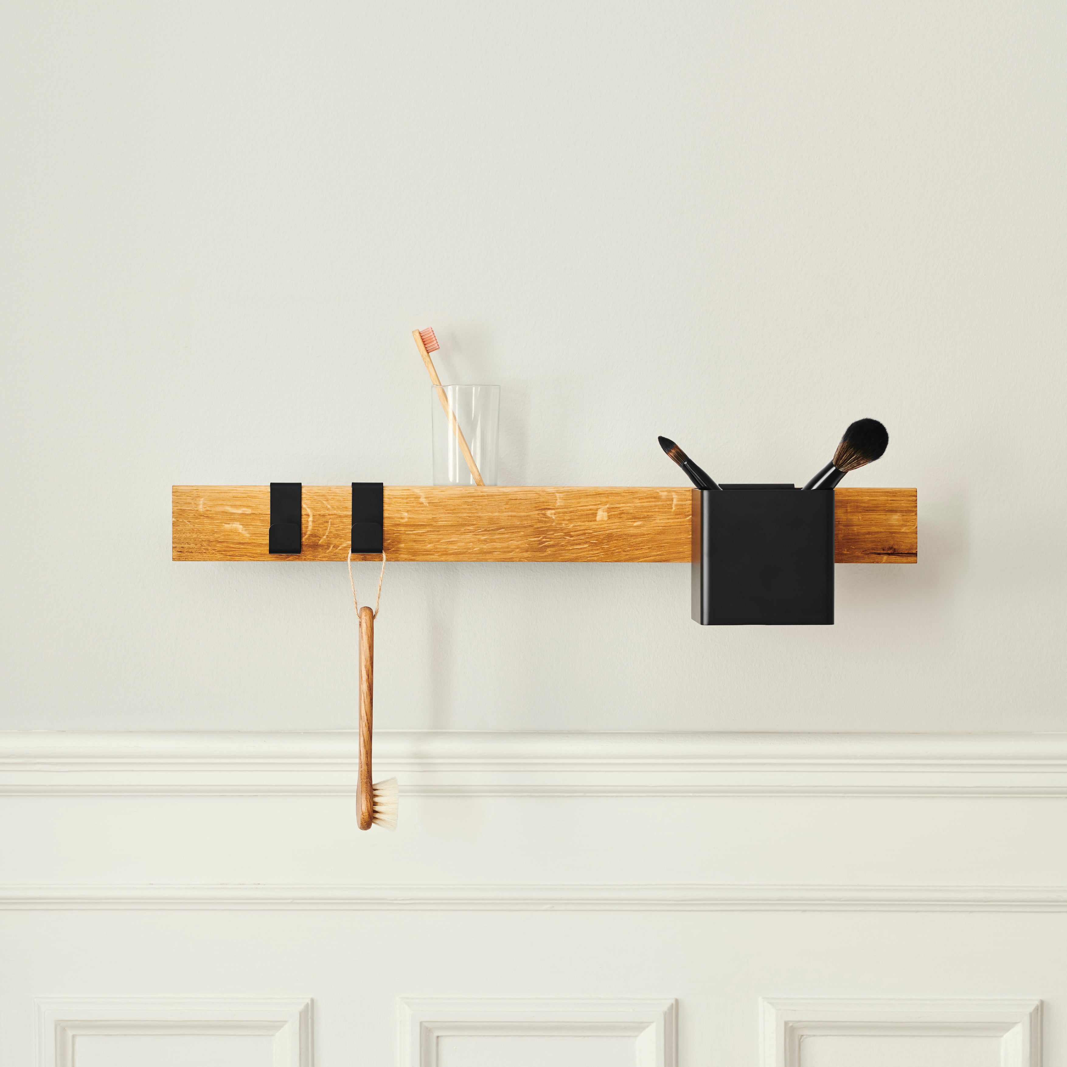 Flex er en multifunktionel opbevaringsserie udført med fokus på materialer af høj kvalitet. Fundamentet for serien er den magnetisk Flex Hylde. Med en kraftfuld magnet er det muligt at placere de forskellige elementer, lige hvor du vil have dem. På den måde er det nemt at ændre hyldens funktion og design. Bokse, bakker og kroge kan let omplaceres, demonteres og sættes på plads igen. Tag kassen med skriveredskaber med dig, og hæng den tilbage, når du er færdig. Borde og arbejdsområder kan holdes frie, samtidig med at dine ting er pænt organiseret. Så har du altid, det du skal bruge lige ved hånden.