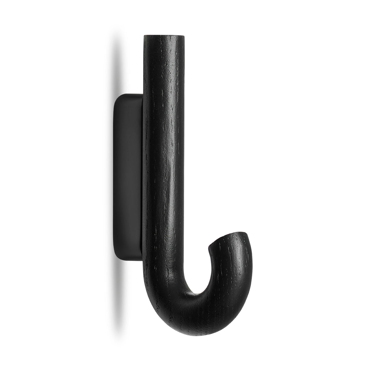 Hook mini som er ca. halv størrelse af den større Hook knage er en diskret og smuk tilføjelse til hjemmet. Designet er meget umiddelbart og indbyder med det samme til at hænge sit overtøj, taske eller paraply på i gangen. Hook mini kan også placeres i køkkenet og være tjener for viskestykker og forklæder eller bruges til håndklæder og badekåber på badeværelset. Knagerne kan fås i sort eg, en varm valnød eller i hvidpigmenteret egetræ med mat lak - alle med smukke trædetaljer. Derudover fås beslagene i både messing, krom og sort.