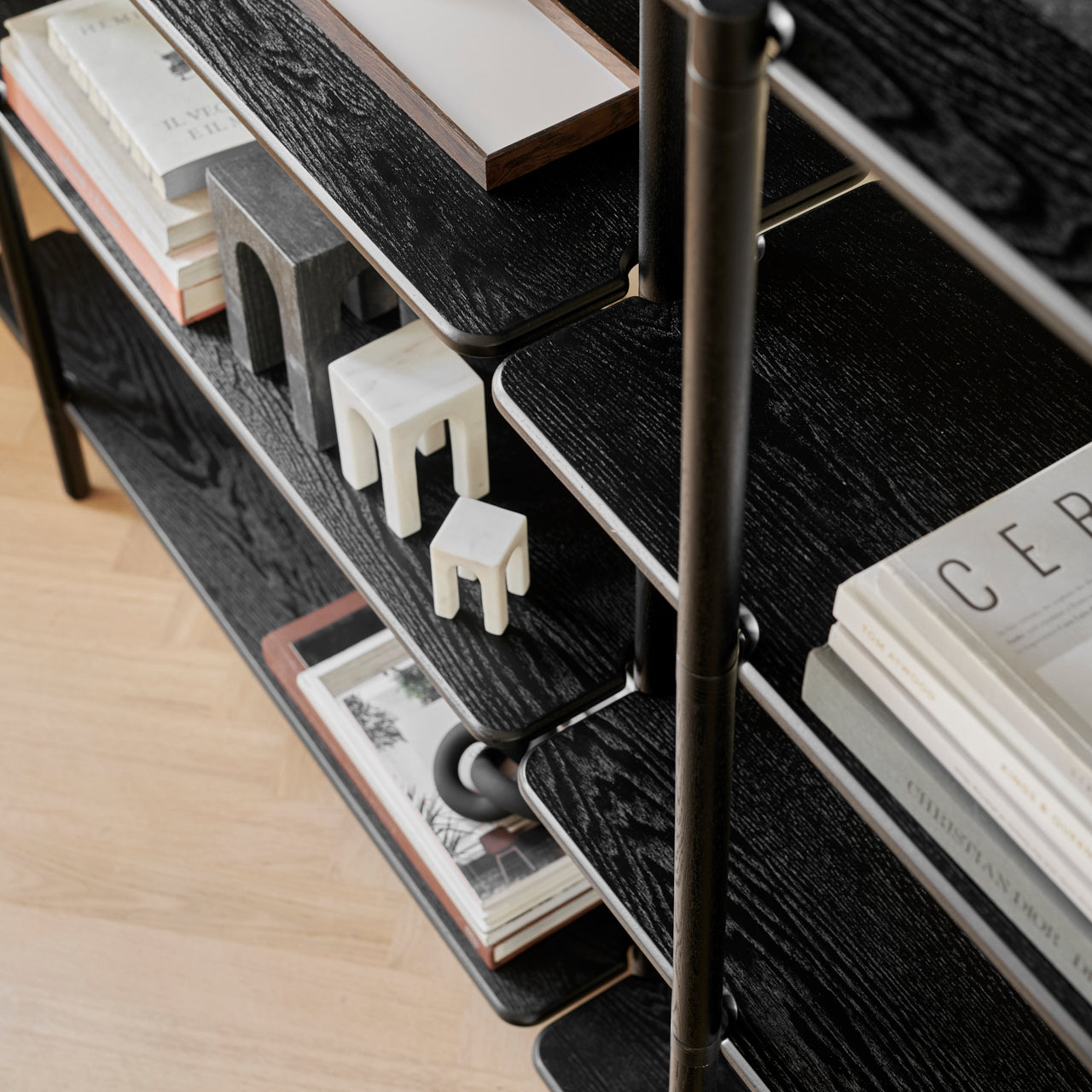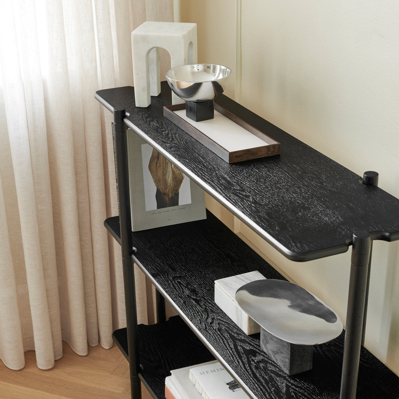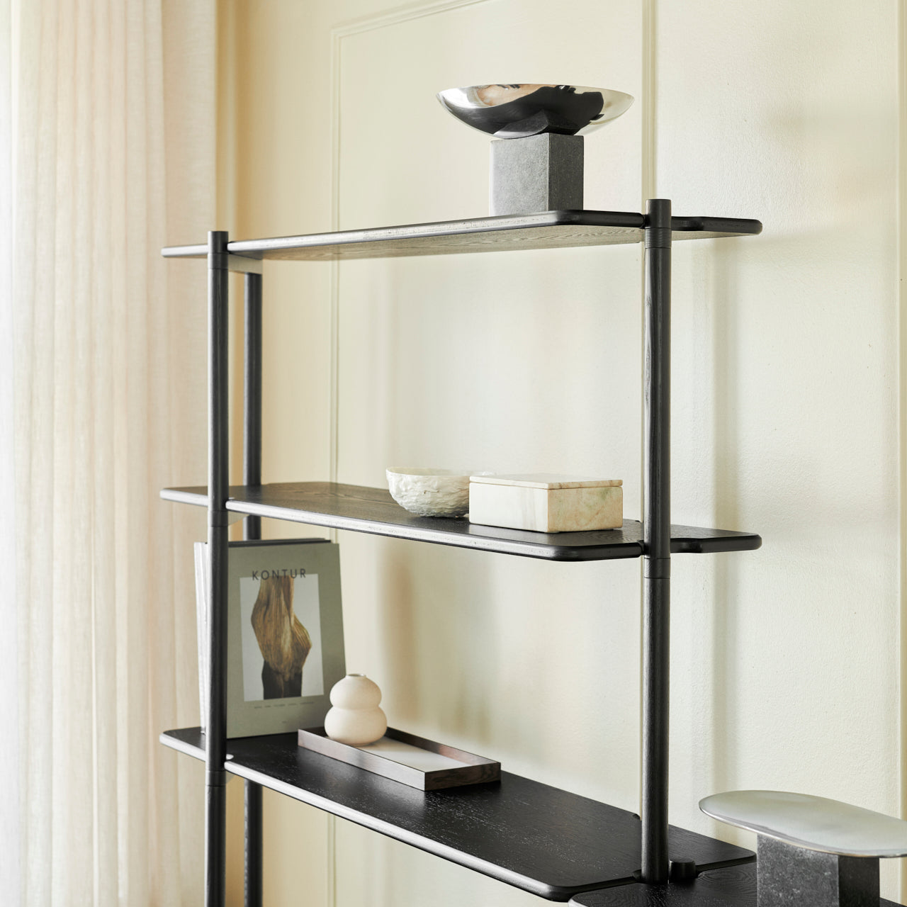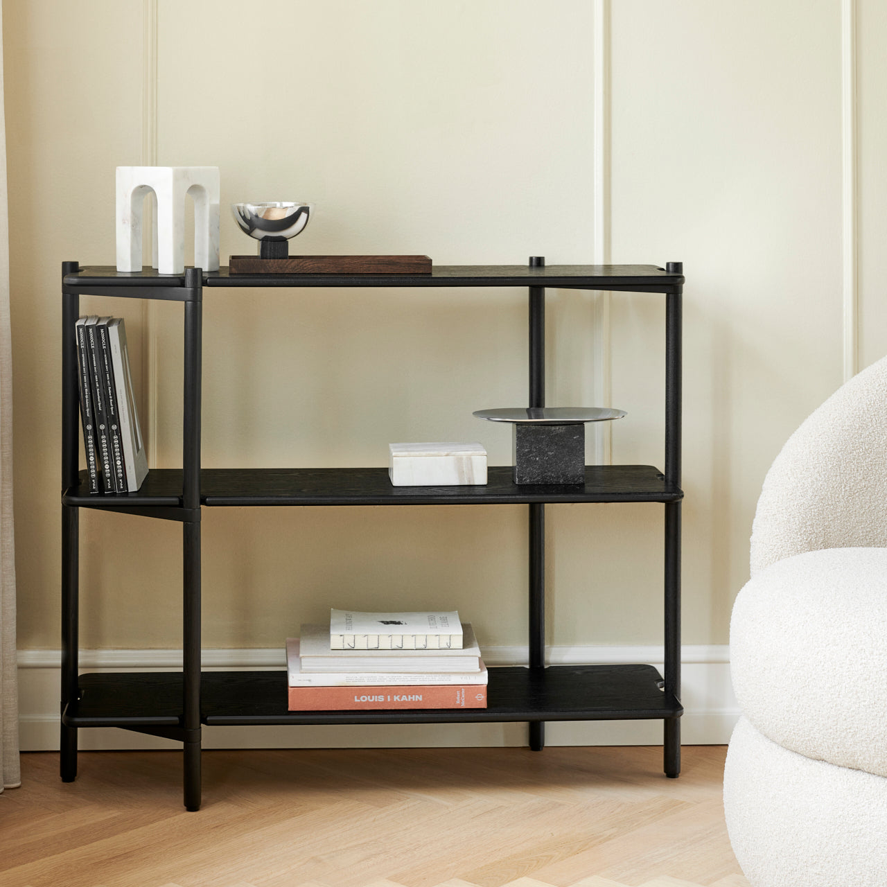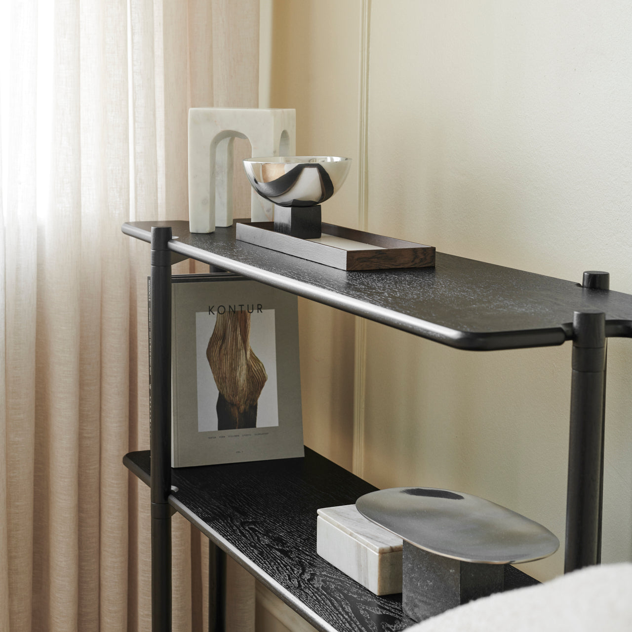 Med sit modulære design tilpasser Invi sig nemt til forskellige miljøer og rum, hvilket skaber uendelige muligheder. Reolen består af to moduler, hvor Modul 1 altid danner basen på gulvet, mens Modul 2 bruges til at bygge i højden. Uanset om det er som en reol i stuen, et konsolbord i entréen eller en rumdeler i et åbent rum, tilfører Invi et strejf af nordisk elegance, som kendetegner Gejsts designsprog.