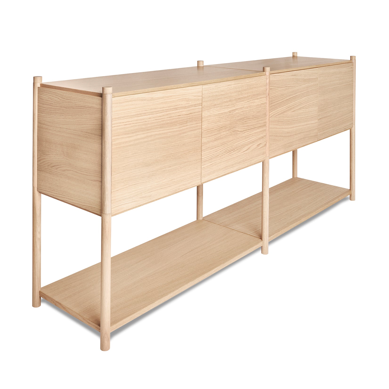 Sceene består af fire forskellige moduler. Modul for modul kan reolsystemet bygges op i højden eller forlænges til siderne. Modul 1 fungerer som fundament for alle opbygninger. Med udgangspunkt i denne kan du eksempelvis tilføje Modul 3, hvis man ønsker den højere eller Modul 2, hvis den ønskes bredere. Modul 4 bruges til at bygge bredere ovenpå et modul 2. Sceene Modulerne kan tilføjes døre, side- og bagpaneler, og dermed kan man skabe en funktionel reol, hvor der både er plads til feriebilleder, arvestykker og de ting man har lyst til at gemme væk.