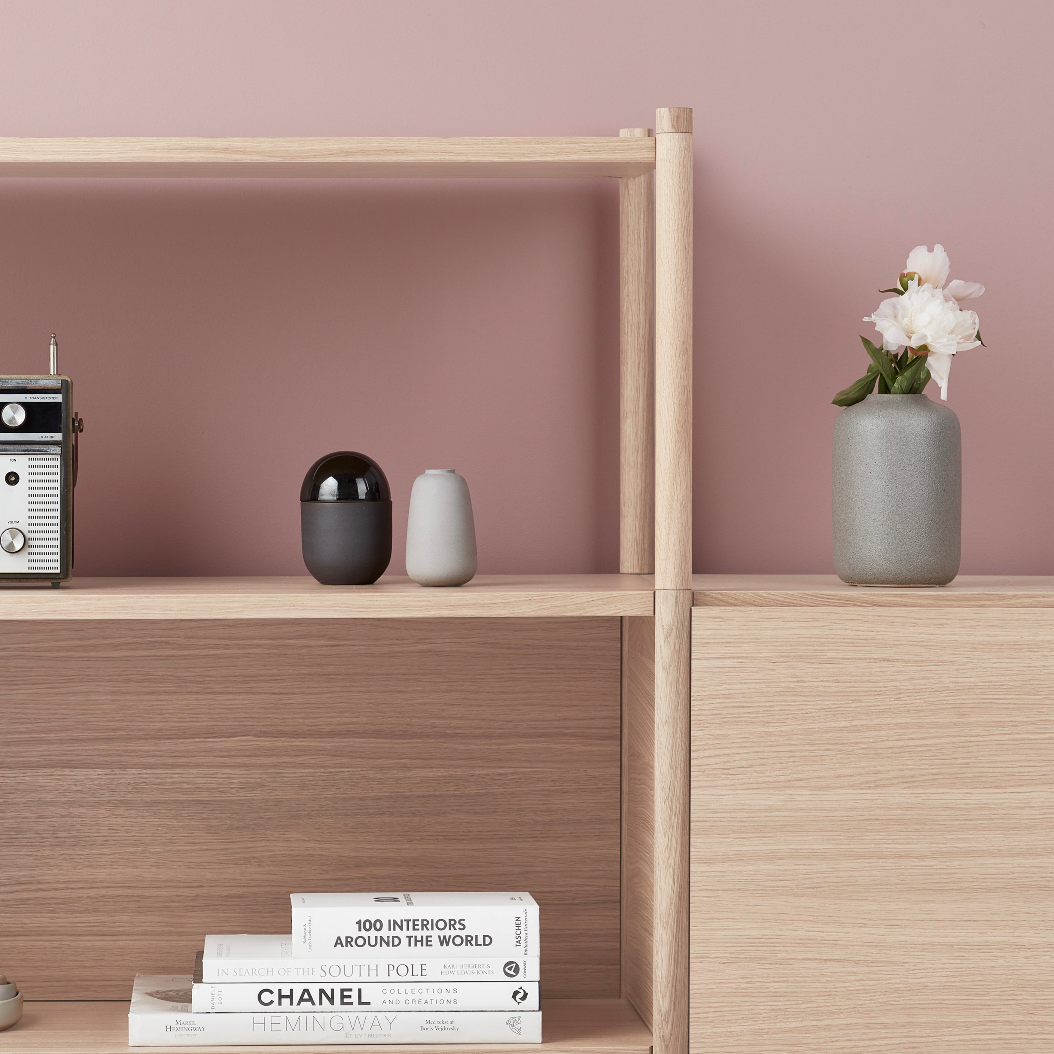Sceene reol d er et modulopbygget opbevaringsystem, der giver dig mulighed for at skabe din egen personlige reol. På den måde kan du selv skabe en reol, der passer præcis til de behov du har. Leg med de forskellige moduler i vores app, eller vælg blandt de eksisterende løsninger.