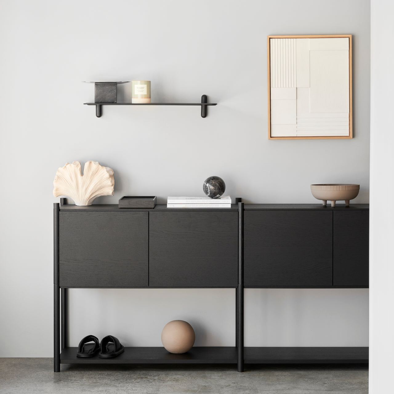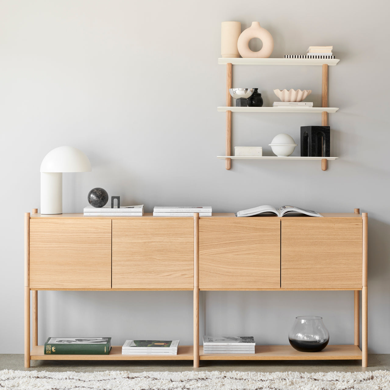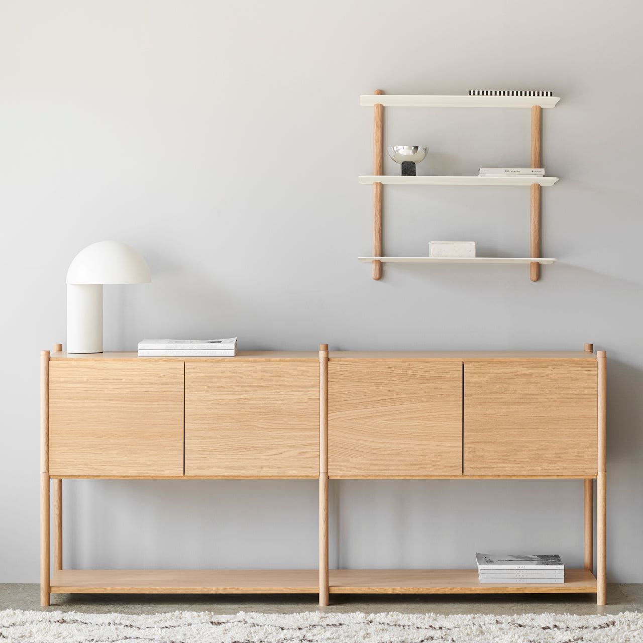 Sceene består af fire forskellige moduler. Modul for modul kan reolsystemet bygges op i højden eller forlænges til siderne. Modul 1 fungerer som fundament for alle opbygninger. Med udgangspunkt i denne kan du eksempelvis tilføje Modul 3, hvis man ønsker den højere eller Modul 2, hvis den ønskes bredere. Modul 4 bruges til at bygge bredere ovenpå et modul 2. Sceene Modulerne kan tilføjes døre, side- og bagpaneler, og dermed kan man skabe en funktionel reol, hvor der både er plads til feriebilleder, arvestykker og de ting man har lyst til at gemme væk.